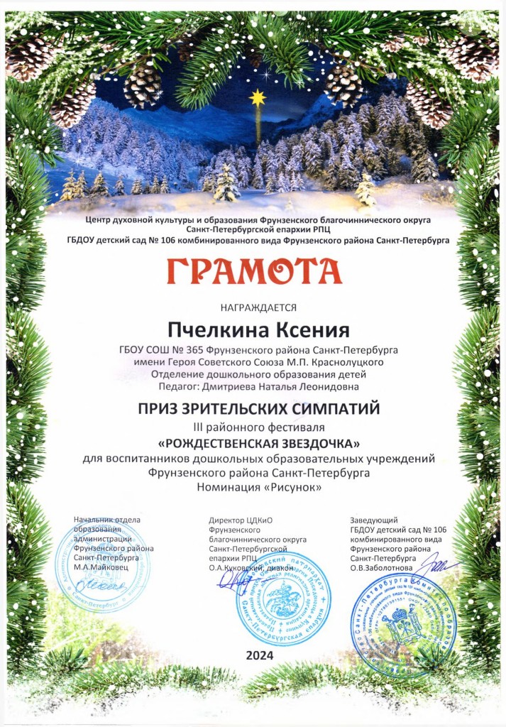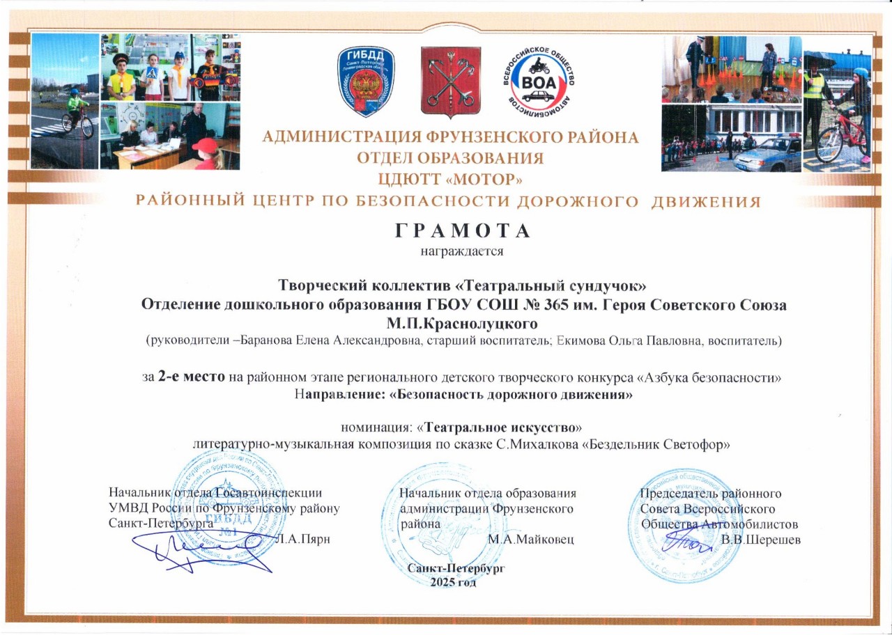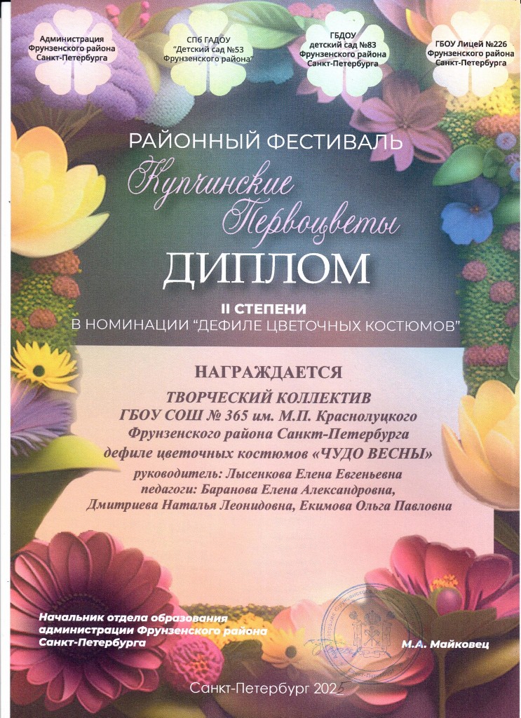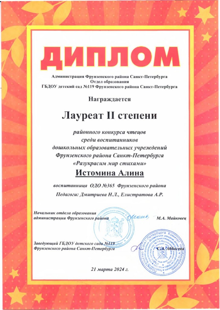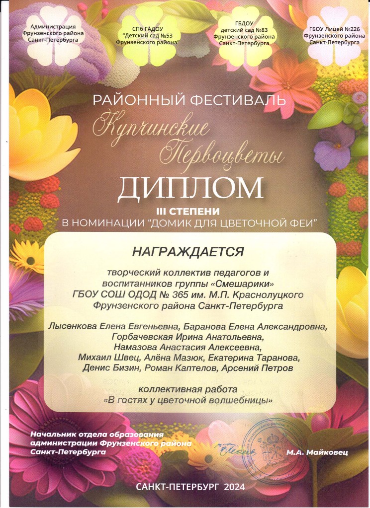 Группа "Божьи коровки": воспитатель Екимова Ольга Павловна награждена дипломом I степени