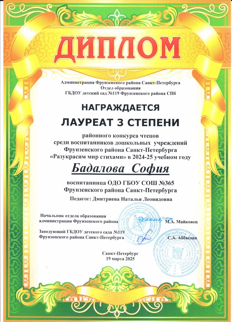 Группа "Теремок": воспитатели Дмитриева Наталья Леонидовна и Табанина Любовь Юрьевна награждены дипломом III степени |